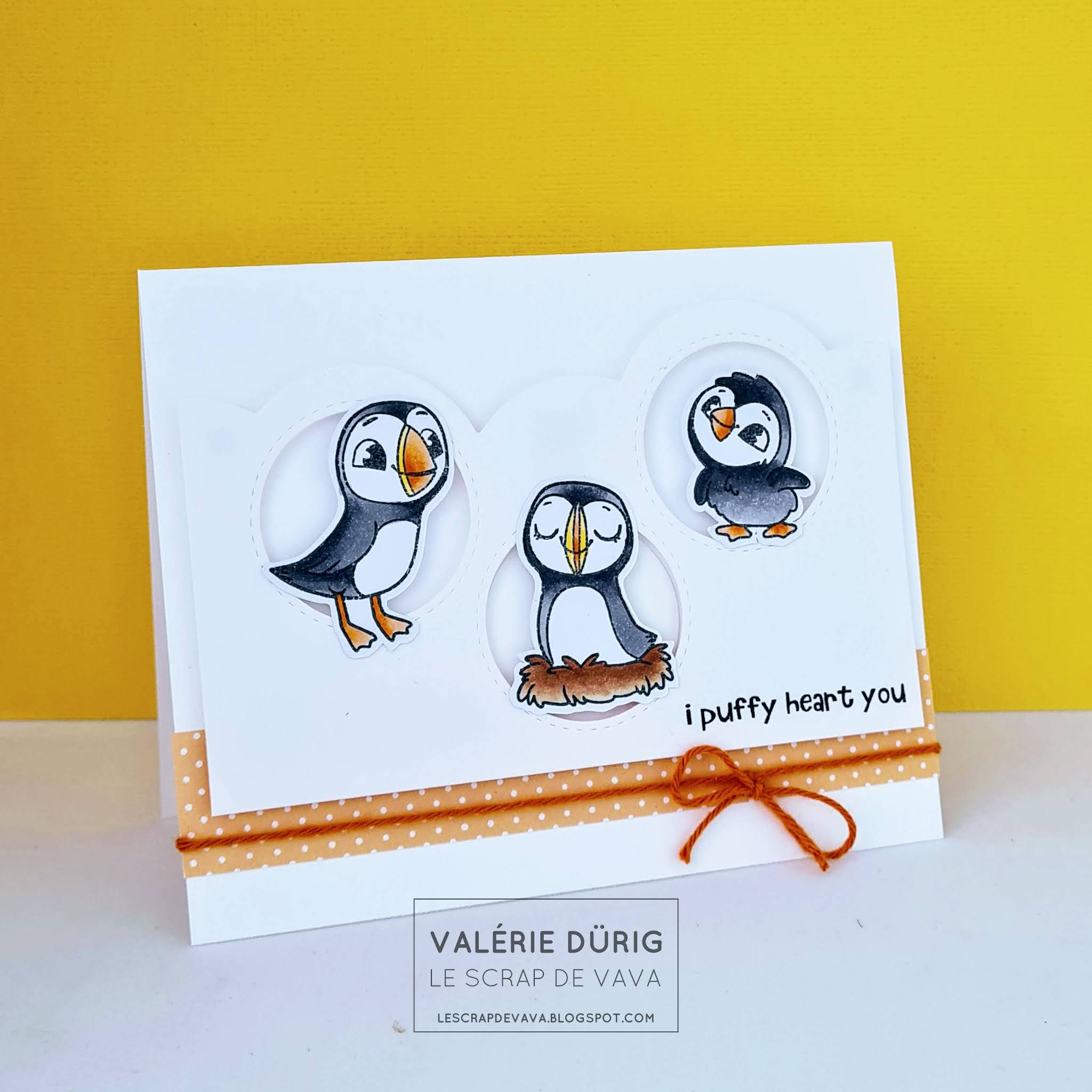 Je n'ai pas suivi le thème en option. Je viens de recevoir ces tampons "puffins" que je trouve adorables!